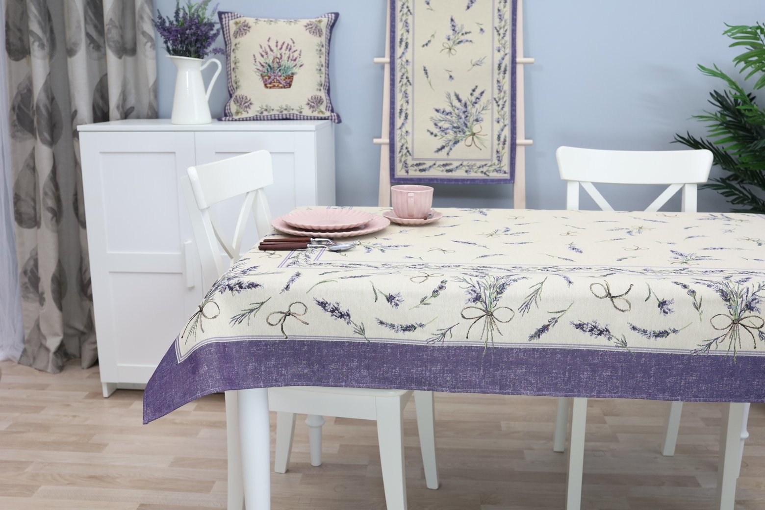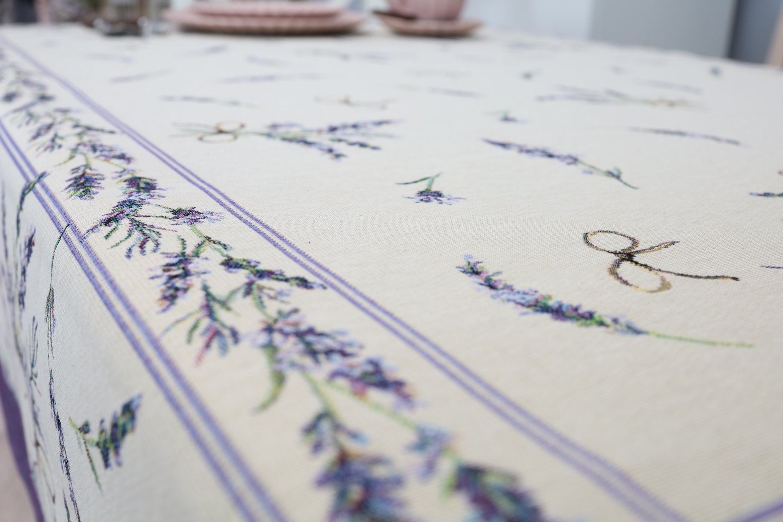 A luxurious, elegant tablecloth Lavenders is made of sturdy tapestry fabric. It is a high-quality, subtle, and memorable gift.
