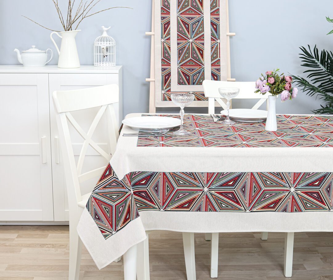 A luxurious, elegant tablecloth Mosaic is made of sturdy tapestry fabric. It is a high-quality, subtle, and memorable gift.