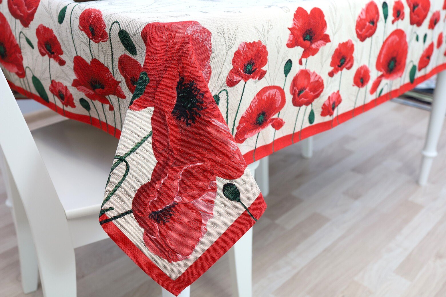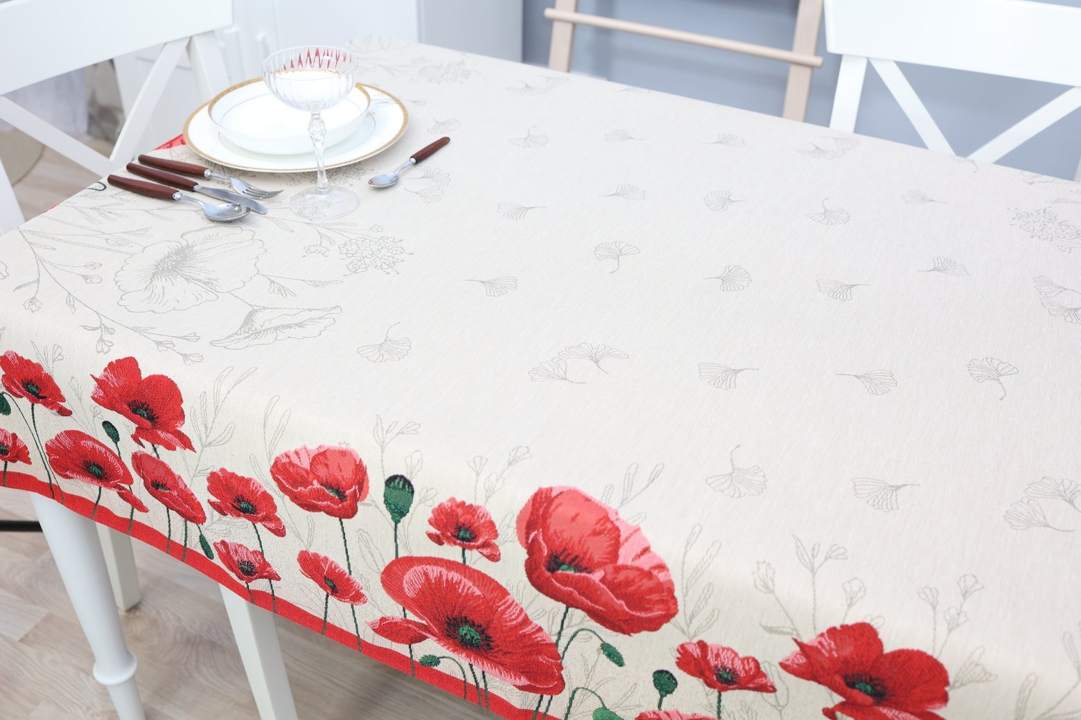 A luxurious, elegant tablecloth Red poppies is made of sturdy tapestry fabric. It is a high-quality, subtle, and memorable gift.