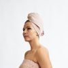 A waffle pink head towel made of flax and cotton fabric, a towel wrapped on the head, also called a turban, has two functions: absorbs the moisture of the hair after the scaling, without damaging the hair, as well as comfortable for use in the sauna as the sun Hat (especially for long hair whose protection of traditional Sauna Hats is usually too small). This functional head towel does not electrical and does not cause allergies, has antiseptic properties, and the universal, sagute adjustable size makes it comfortable to clog the head and does not slip from it. Two types of head towel can be used: